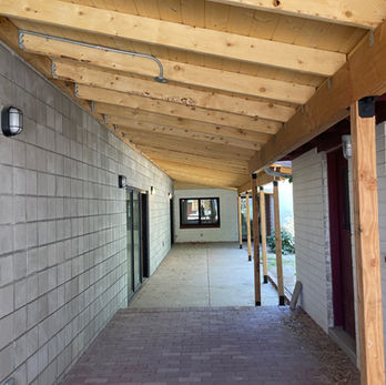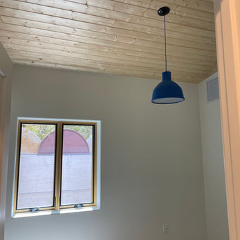 Metal roof tie in with existing clay tile. Pine wood ceilings and sealed concrete floors. 6 months total construction schedule.